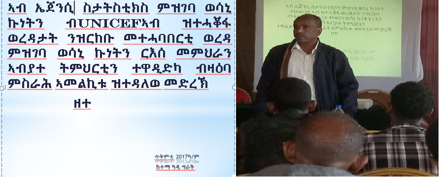 ብምትሕብባር ዩኒሴፍን ኤጀንሲ ስታቲስቲክስ ምዝገባ ወሳኒ ኩነትን ካብ ኩለን ወረዳታት ናይ ዞባታት መራሕቲ ሃይማኖት ኣቦታት ፣ናይ ኤጀንሲ ስታቲስቲክስን ምዝገባ ወሳኒ ኩነትን መራሕቲ ጉጅለ ኣቅርቦት ቅበላን መፅናዕቲን ስልጠናን ኩለን ወረዳታት፣ካልኦት ዝምልከቶም መዳርግቲ ኣካላትን ኣብ ዝተረኽቡሉ ኣብ ከይዲ ምዝገባ ወሳኒ ኩነት ናይ ግንዛበ መጨበጢ ፅሑፍ ድሕሪ ምቕራብን ኣብ ሕሉፍ 2016ዓ/ም ንመዳርግቲ ኣካላት ኣብ ዝተውሃበ ግንዛበን ዝተረኽበ ለውጢን ብምቅራብ፡-